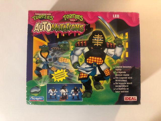 Figura de acción Leonardo de las Tortugas Ninja Automutation de 1998. La figura está en su caja original. - Incluye la figura de Leonardo y accesorios.