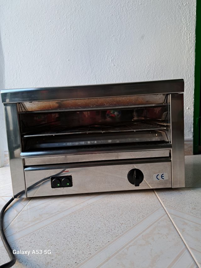 Tostadora industrial de una placa mide 28 de alto 25.5 de fondo y 45 de ancho
