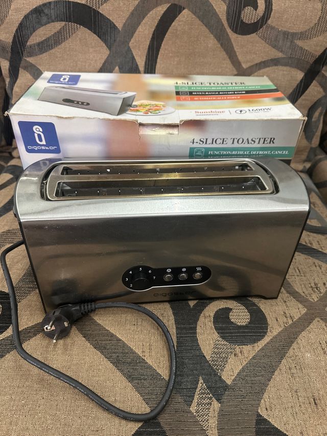 Detalles del productoTostadora Aigostar de 4 rebanadas en acero inoxidable. Está prácticamente nueva y en perfecto estado.
