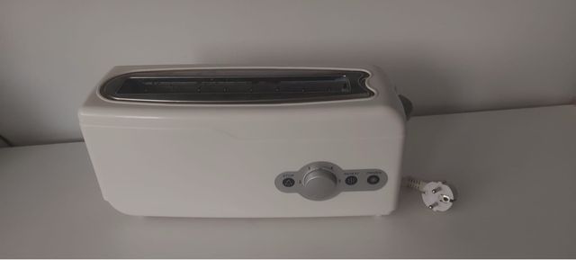 Tostadora de color blanco con ranuras amplias. - Diseño moderno. - Controles de tostado. - Función de parada.