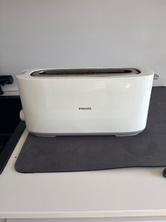 Detalles del productoTostadora de la marca Philips en color blanco. Un electrodoméstico práctico para tu cocina.