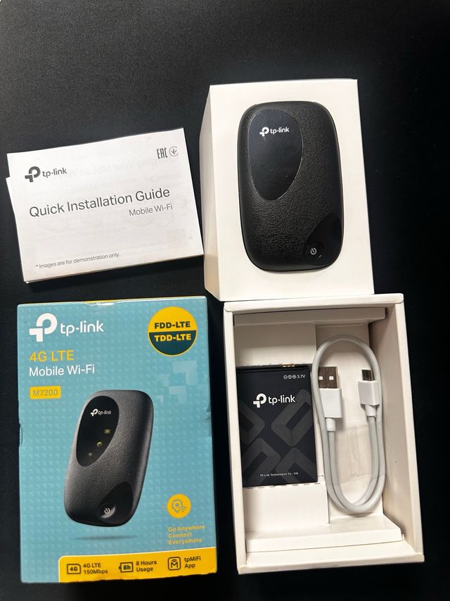 Detalles del productoRouter móvil tp-link M7200, en perfecto estado. Es un dispositivo elegante y compacto, ideal para tener conexión a internet donde sea. Conecta hasta 10 dispositivos inalambricos a la vez: tablets, ordenadores y moviles.