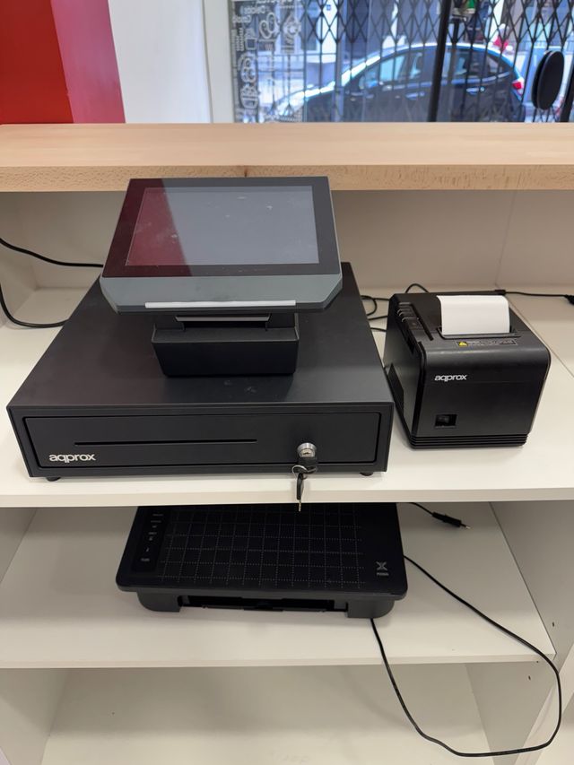 Equipo completo para punto de venta. - TPV táctil con pantalla. - Cajón portamonedas Aprox con llave. - Impresora térmica de tickets Aprox.