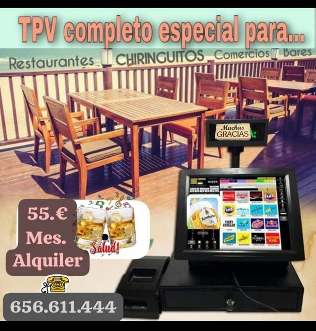 Mes y "QUEDATE CON EL EN PROPIEDAD" por solo 250€ después de un año. Esta es la mejor elección para tu negocio. Enviamos el TPV Táctil a cualquier punto de España en 24 horas, programado y listo para trabajar, con gastos de envío gratis. ¿Aún te lo estás pensando? Teléfono .656 611 444