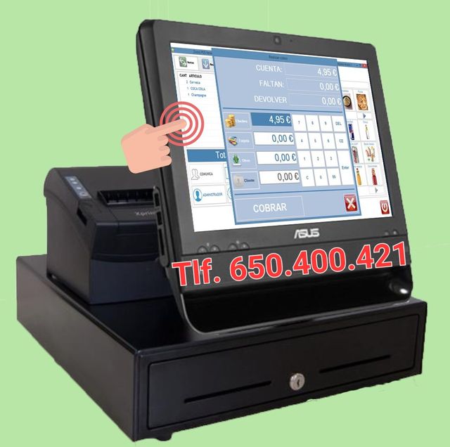 Detalles del productoTPV táctil y listo para usar , sin pagos de mantenimiento mensuales ni ningún otro gasto extra. Incluye :