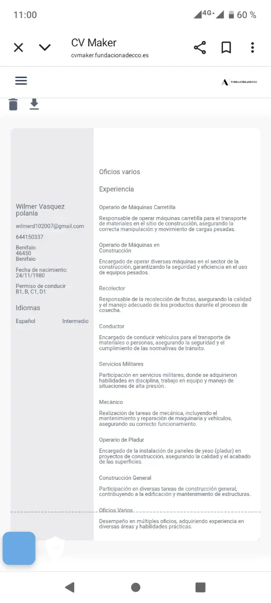 Detalles del productoMe desempeño como conductor, en reformas, peon, empacador, fácil de adecuarme a cualquier trabajo, con permiso de trabajo y licencia de conducción internacional vigente (B,B1,C1,D1) por el moemnto pero ya gestionando la homologacion igualmente, conocimiento en mecánica, y oficios varios en general, Disponibilidad completa, y desplazamiento completa. .