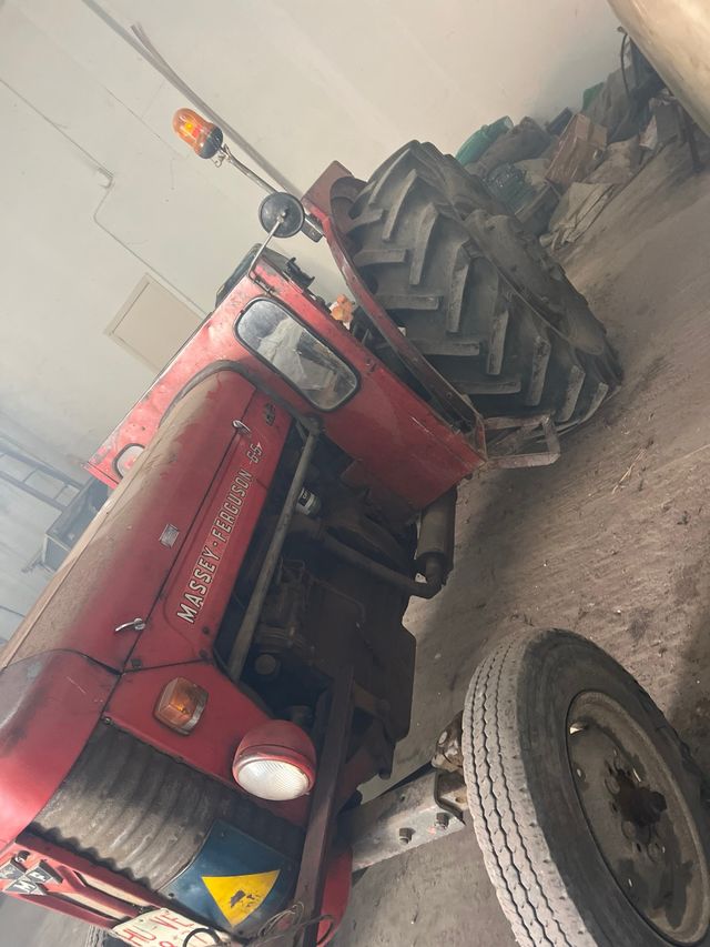 Tractor Massey Ferguson en color rojo. Ideal para trabajos agrícolas. - Ruedas delanteras y traseras. - Cabina con ventanas. - Luces de señalización.
