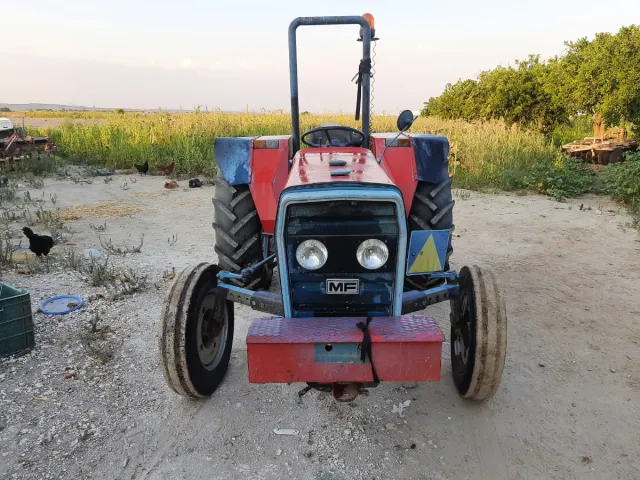 Tractor Massey Ferguson en color rojo, ideal para trabajos agrícolas. - Ruedas delanteras y traseras. - Luces delanteras. - Asiento. - Volante.