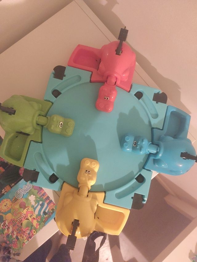 Tradicional juego de hipopótamos tragabolas. Con la caja original.