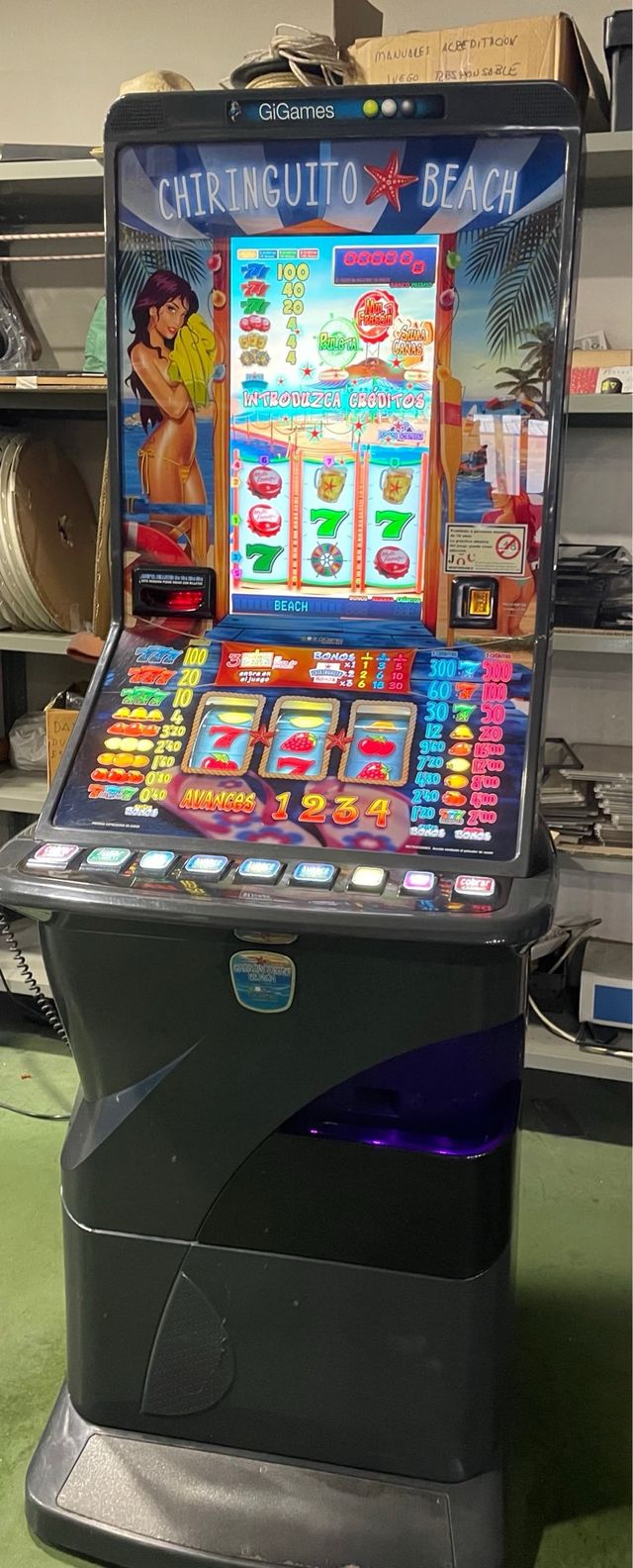 Máquina tragaperras GiGames modelo Chiringuito Beach. mando vídeo funcionando - Pantalla principal con gráficos. - Panel de control con botones.