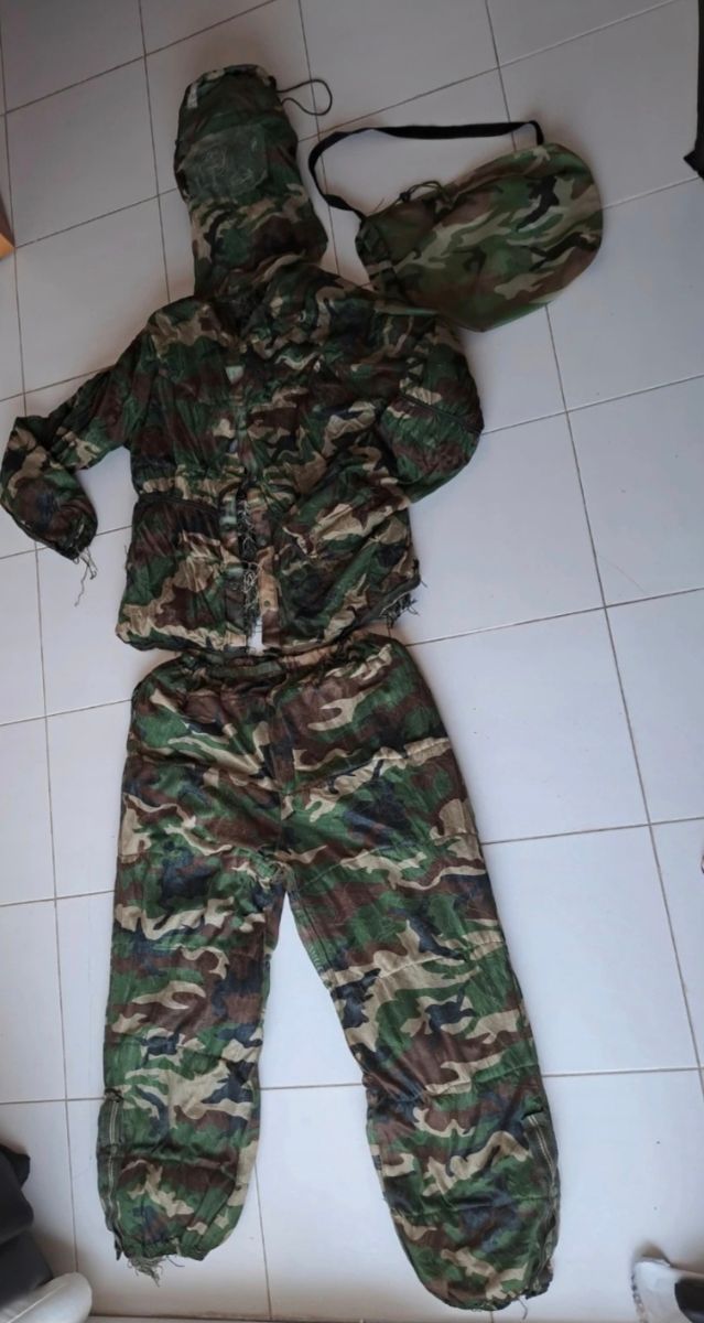 Conjunto traje de camuflaje nuevo. Incluye: - Chaqueta - Pantalón - Cabeza - Bolsa