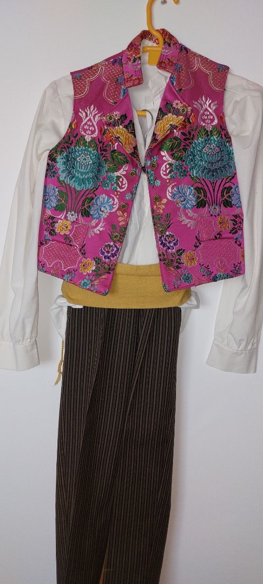 Detalles del productoTraje de niño completo huertano talla 36. Incluye chaleco, camisa, pantalón rayado y fajín. En las fotos podéis ver lo que mide cada prenda. Mi hijo lo usó cuando tenía 9-10 años. El fajín mide 160 cm. En mi perfil podéis ver más prendas, tanto de traje fallero negro tradicional como de huertano y complementos.