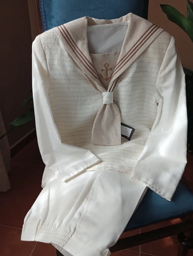 Traje Comunión Marinero Talla 9 Beige/Blanco