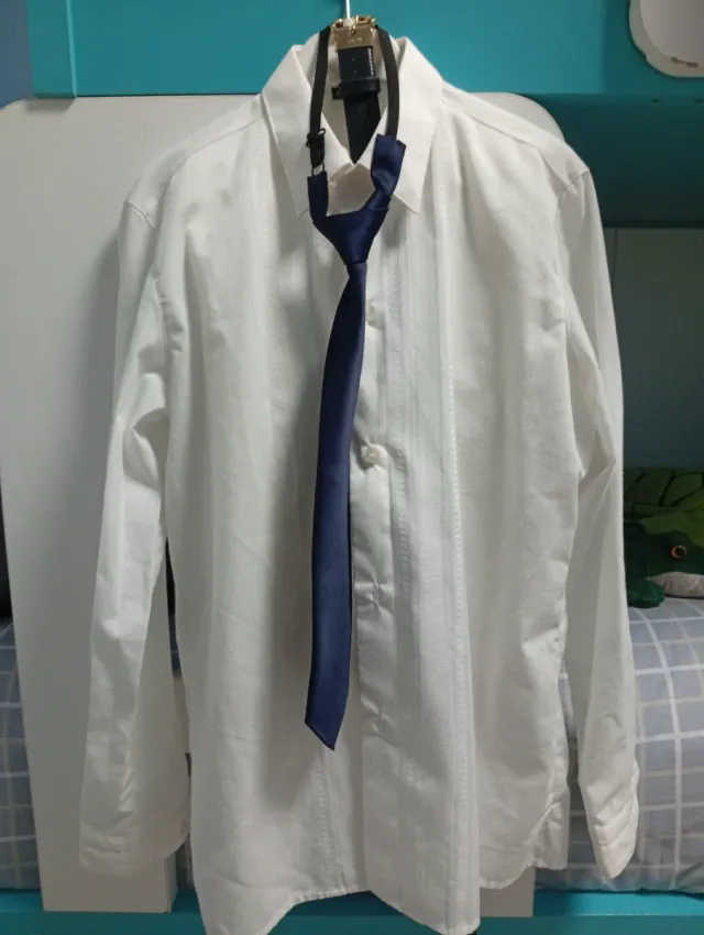 Conjunto de traje para comunión de niño. - Camisa blanca de manga larga. - Corbata azul marino. - Cinturón negro. Taja de comunión de almirante