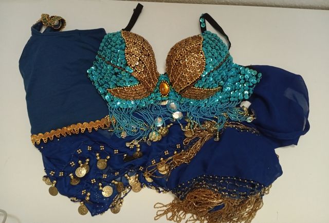 Traje danza del vientre azul y dorado
