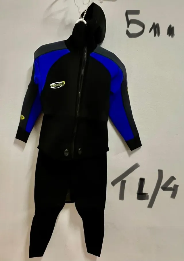 Traje de buceo completo con capucha. SIN ESTRENAR. - TALLA L. - Material de neopreno. - 5 mm - Cremallera frontal. - Diseño en negro y azul.