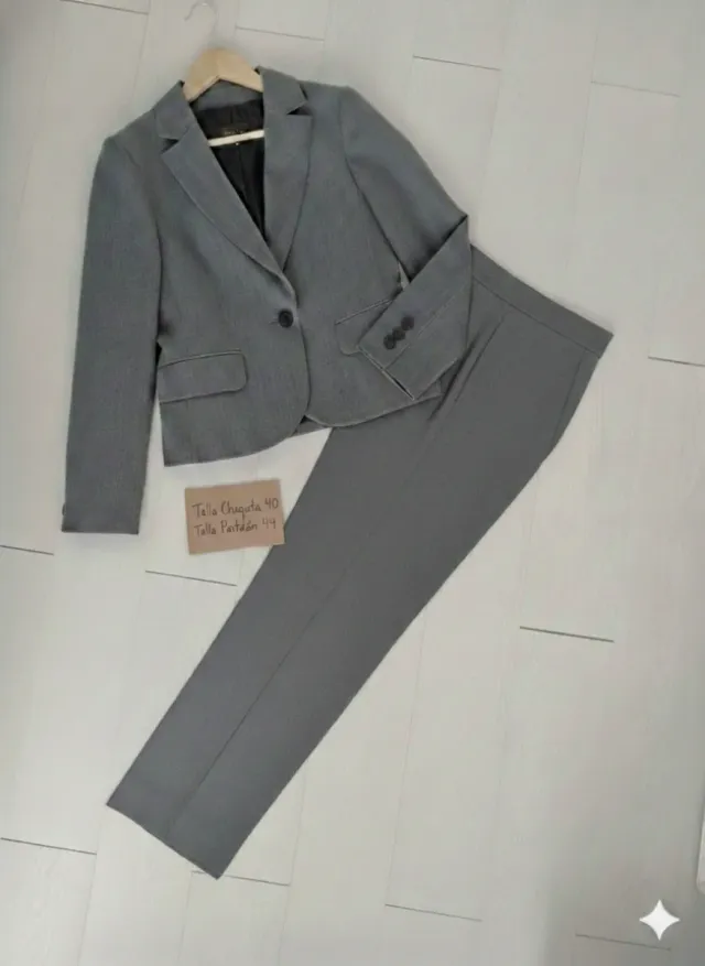 TRAJE DE CHAQUETA Y PANTALON DE MUJER COLOR GRIS