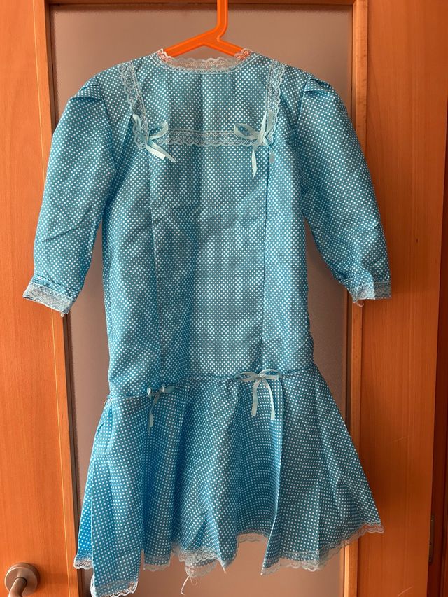Detalles del productoTraje de chulapa con estampado de lunares blancos sobre fondo azul.