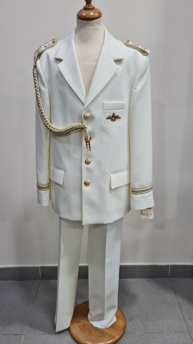 Traje de comunión almirante color crudo con detalles en dorado. Nuevo procedente de liquidacion de tienda (sin estrenar y aun con su etiqueta). Talla 13.