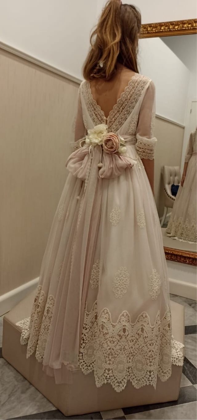 Traje de comunion del bahul del peque valorado en 895€. lazada preciosa con flores. Un solo uso