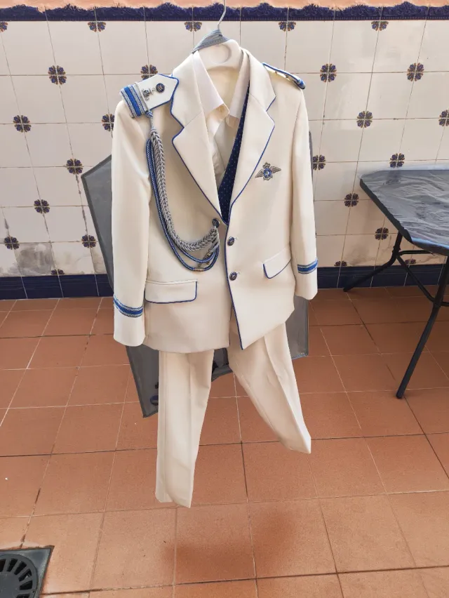 Detalles del productoTraje de comunión completo en color blanco con detalles en azul.
