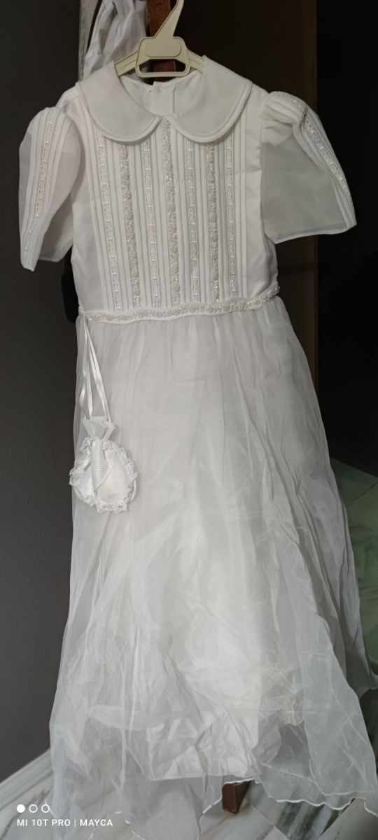 Detalles del productoTraje de comunión cuello bebé ,sencillo y elegante blanco para niña de 9 años grande pero meter siempre se podría ,Regalo la diadema del pelo ,guantes y limosina .Planchado se vería mejor pero no se me ocurrió #vestidoscomunion #tienda#blanco