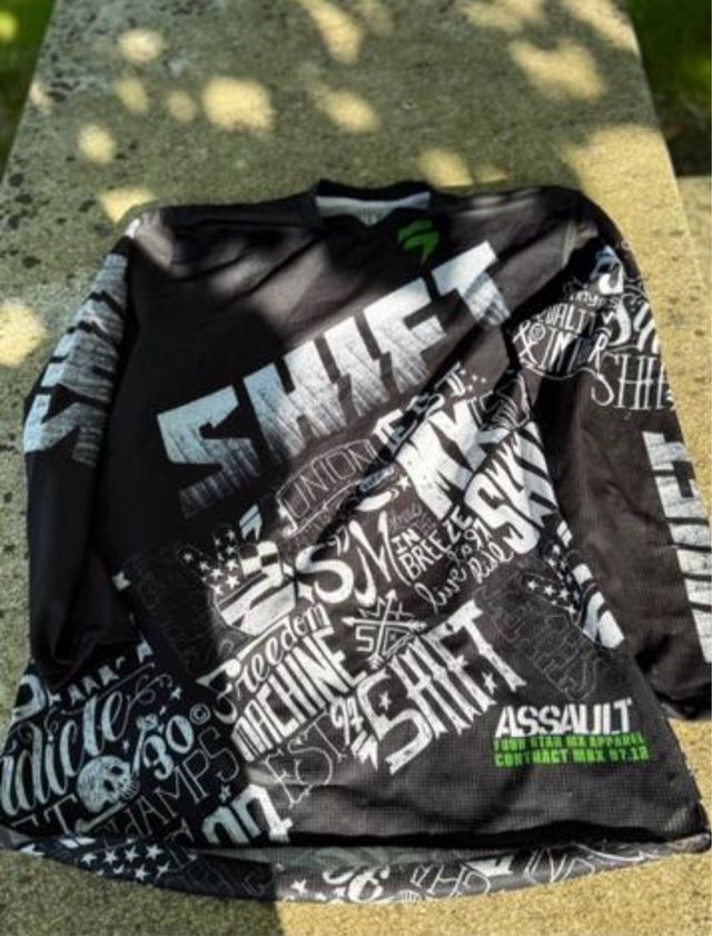 Detalles del productoTraje de cross/enduro SHIFT ASSAULT con un diseño gráfico llamativo.