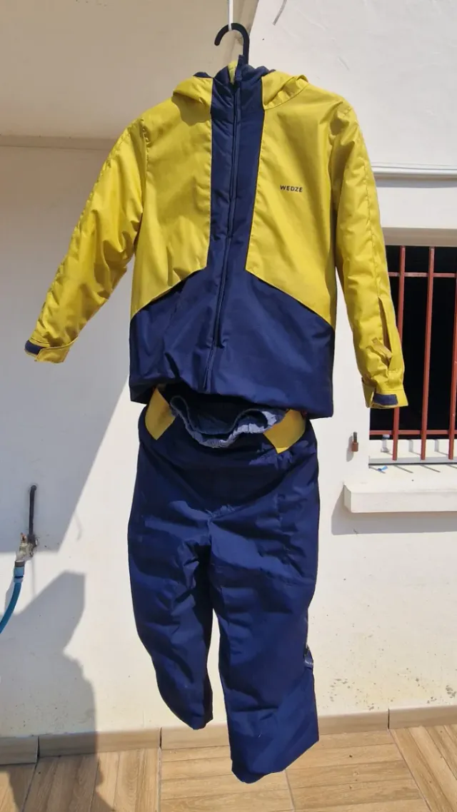 Conjunto de esquí para niñ@s de la marca Wedze, ideal para disfrutar de la nieve. - Chaqueta de color amarillo y azul. - Pantalón de color azul. - Marca: Wedze.