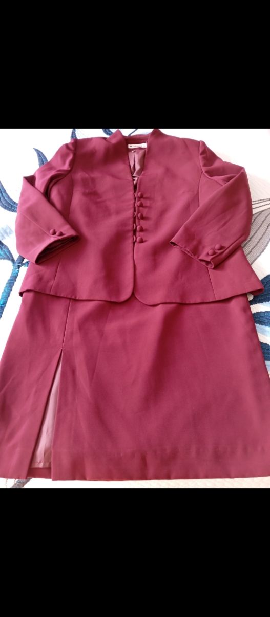 Traje de falda y americana color burdeos