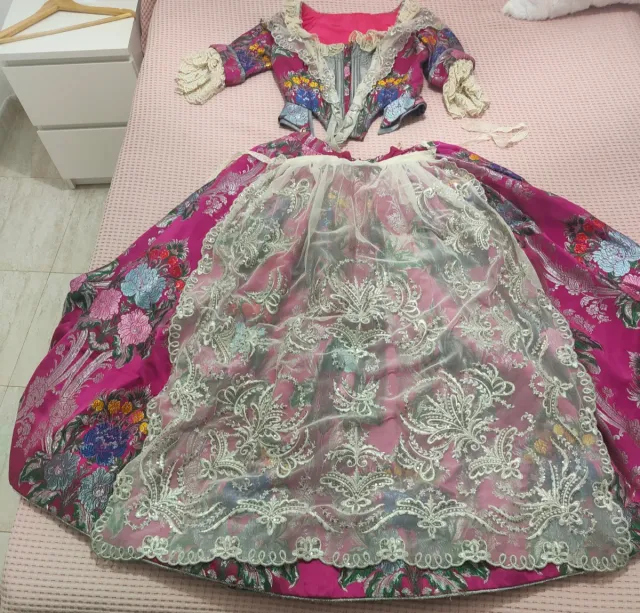 Detalles del productoTraje de Fallera de media manga completo con manteletas incluidas. También con opción de zapatos forrados con la misma tela talla 36 por el mismo precio.
