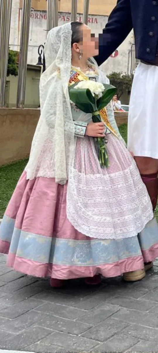Traje de fallera completo, ideal para niñas. - Talla aproximada 4-6 años. - Incluye manteletas.