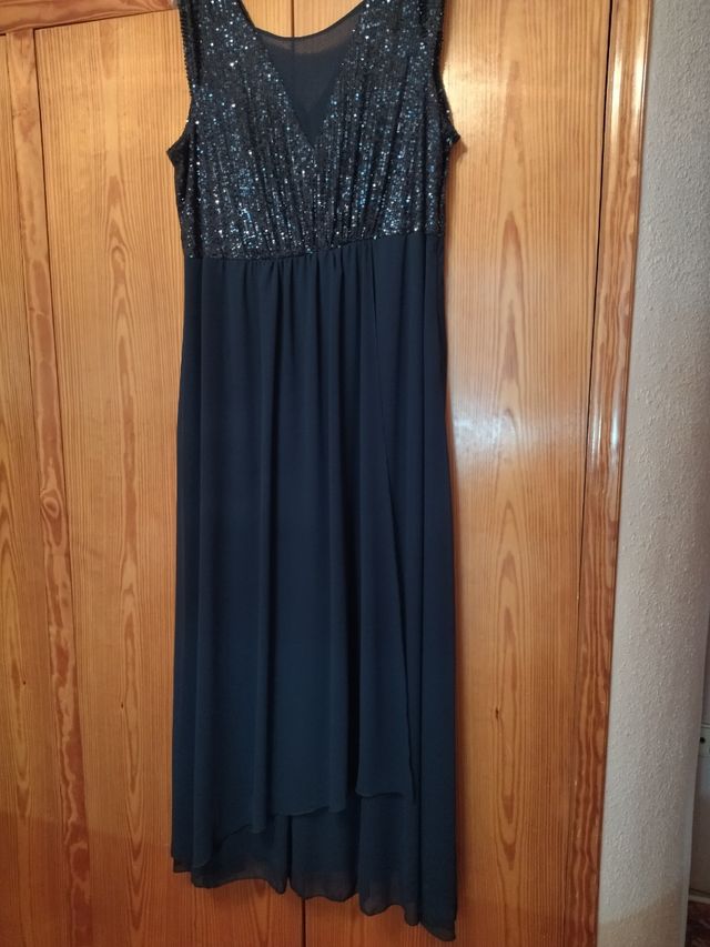 traje de fiesta de talla grande, talla 58. comprado en boutique y su precio de 200€. esta en perfecto estado, solo un uso. con cinturón del mismo color.