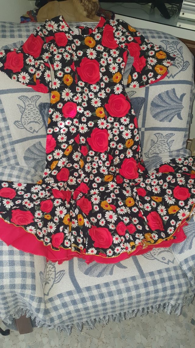 Precioso traje de flamenca de niña de tela de crepe echo a mano, la talla puede ser para 4,5 y 6 años no despinta, no esta roto, esta como nuevo