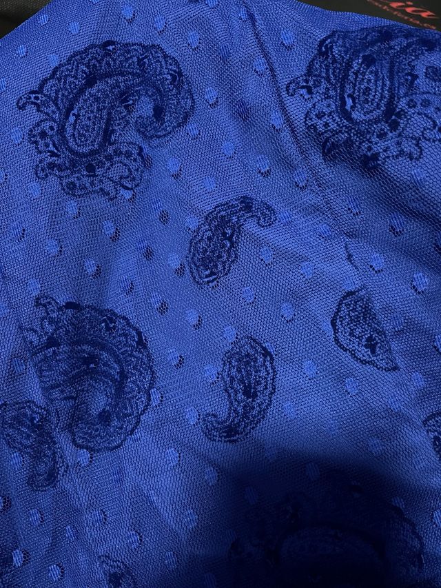 Motivos en terciopelo flocado con tipo cachemir. Ligero con algo de elasticidad. Precio
