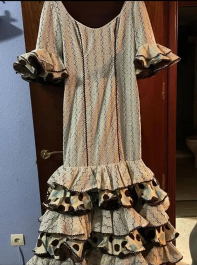 Traje de flamenca blanco y marrón