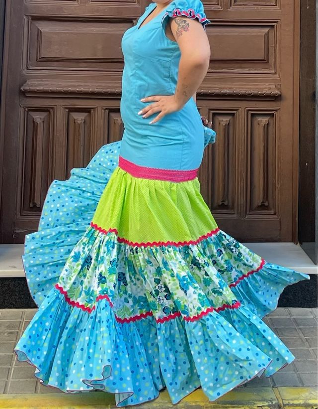 Como nuevo · XL / 42 / 14 · moda flamenca · Azul y Verde
