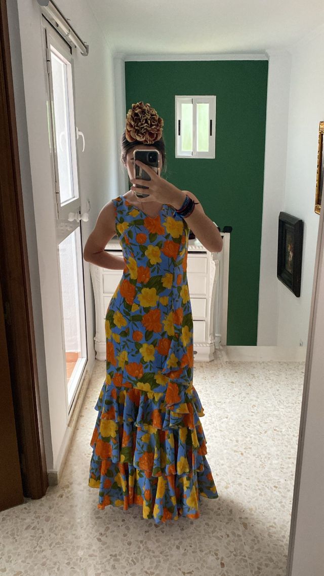 Buen estado · M / 38 / 10 · flamenca · Azul y Naranja