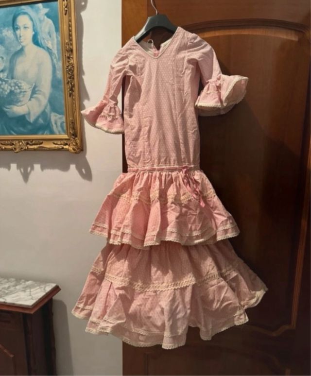 Traje de flamenca rosa volantes y lunares