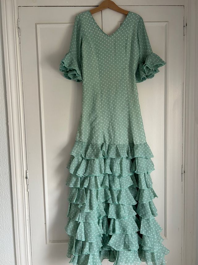 - Falda con múltiples volantes escalonados.
