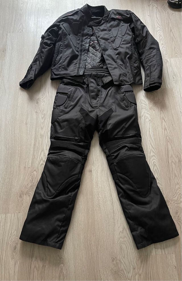 Detalles del productoConjunto de chaqueta y pantalón de moto.