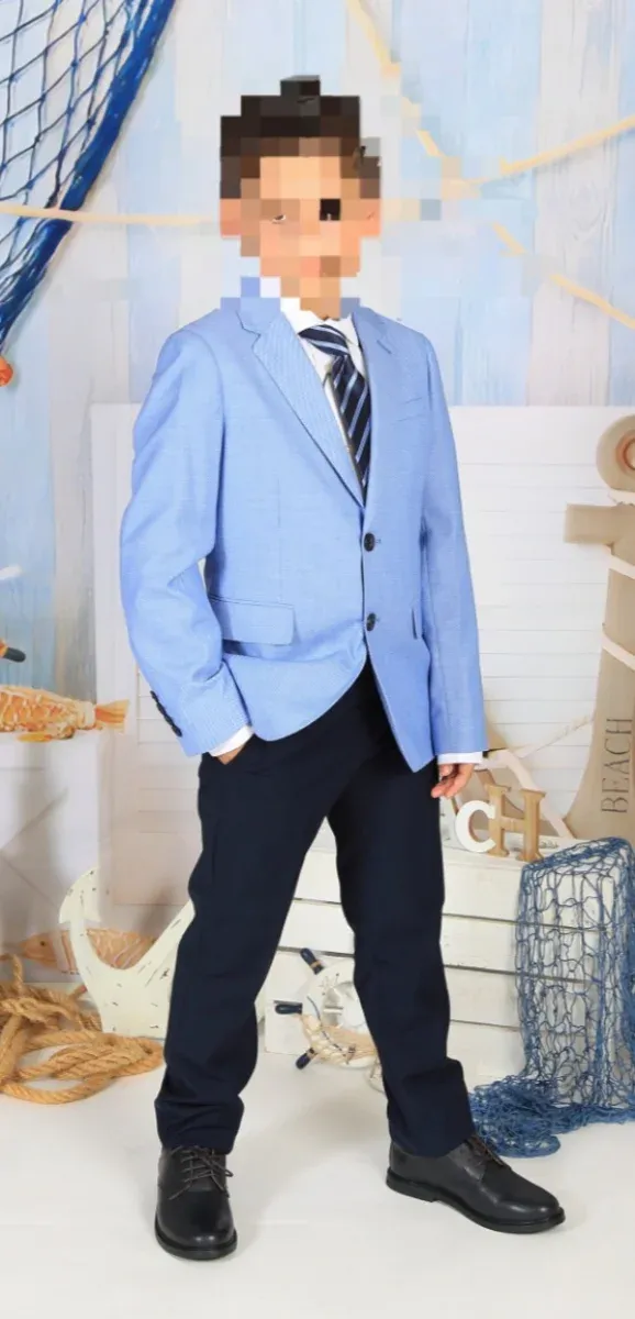 Detalles del productoTraje de chaqueta para niño, ideal para comuniones o eventos especiales. El conjunto incluye chaqueta y pantalón. Talla 9-10 años 140 cm.