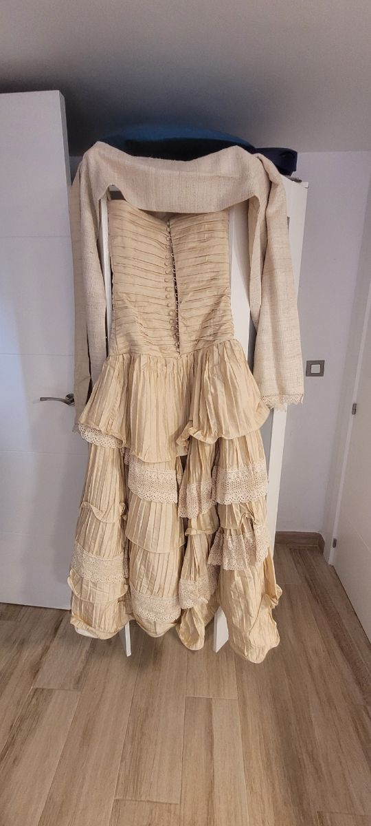 Traje de novia beige con volantes