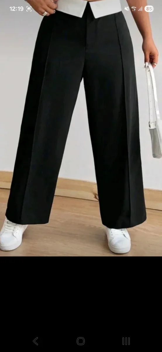 Traje de pantalón negro y blanco
