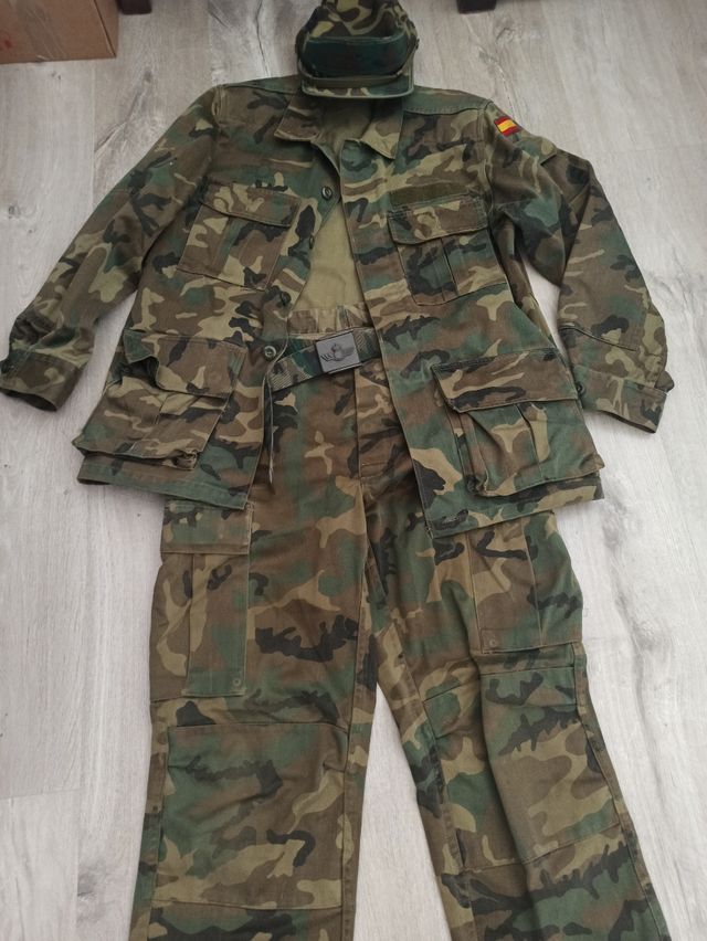 Traje Militar de faena boscoso+ceñidor +gorra.Cintura 90 Ancho de Sisa 52.