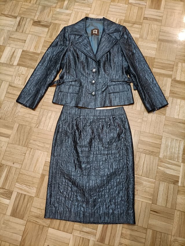 Traje Falda y Americana Gris Plateado