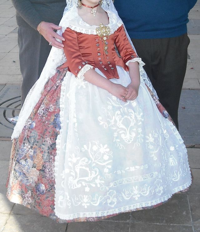 TRAJE FALLERA NIÑA: 2 CORPIÑOS, FALDA Y MANTELETAS