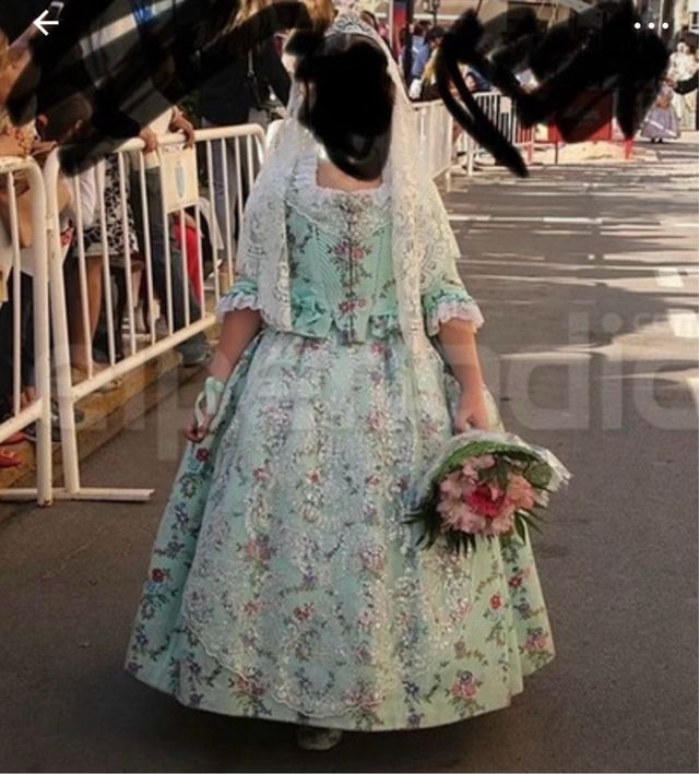 Traje Fallera niña color verde aqua, talla 6-8 año