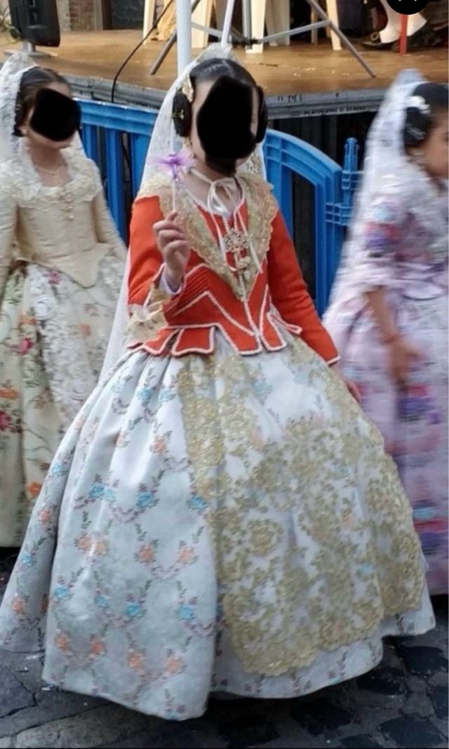 Detalles del productoPrecioso traje de fallera para niña. Está nuevo, solo puesto 2 tardes. Se vende con manteletas. Tiene tela para sacar.