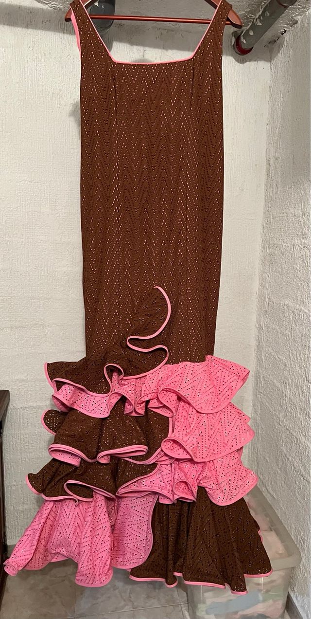 Traje Flamenca marrón y rosa
