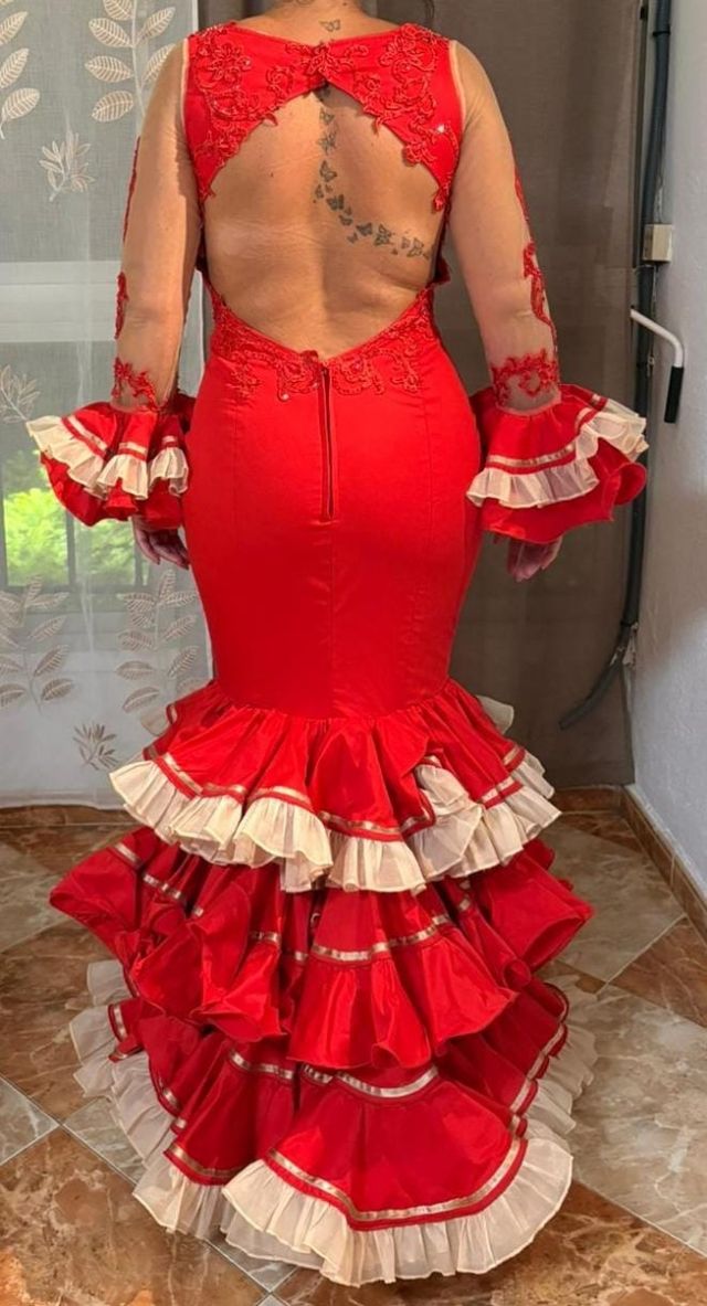 Traje Flamenco Rojo y Trasparente, talla m, 174cm
